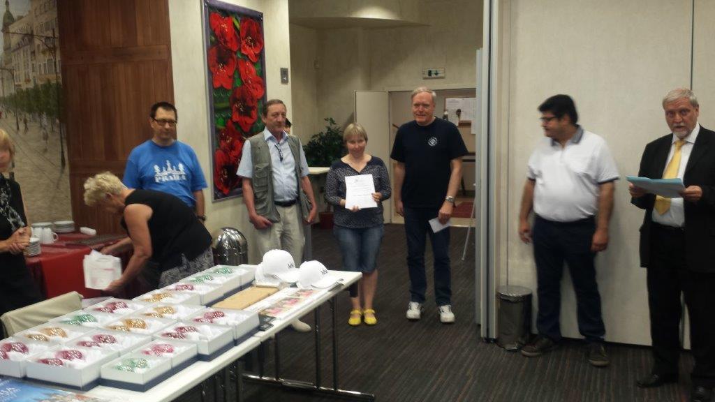 Siegerehrung von links Daniel Hadžala CZE, WIM Tatiana Kasparova BLR, Ulrich Wolf GER